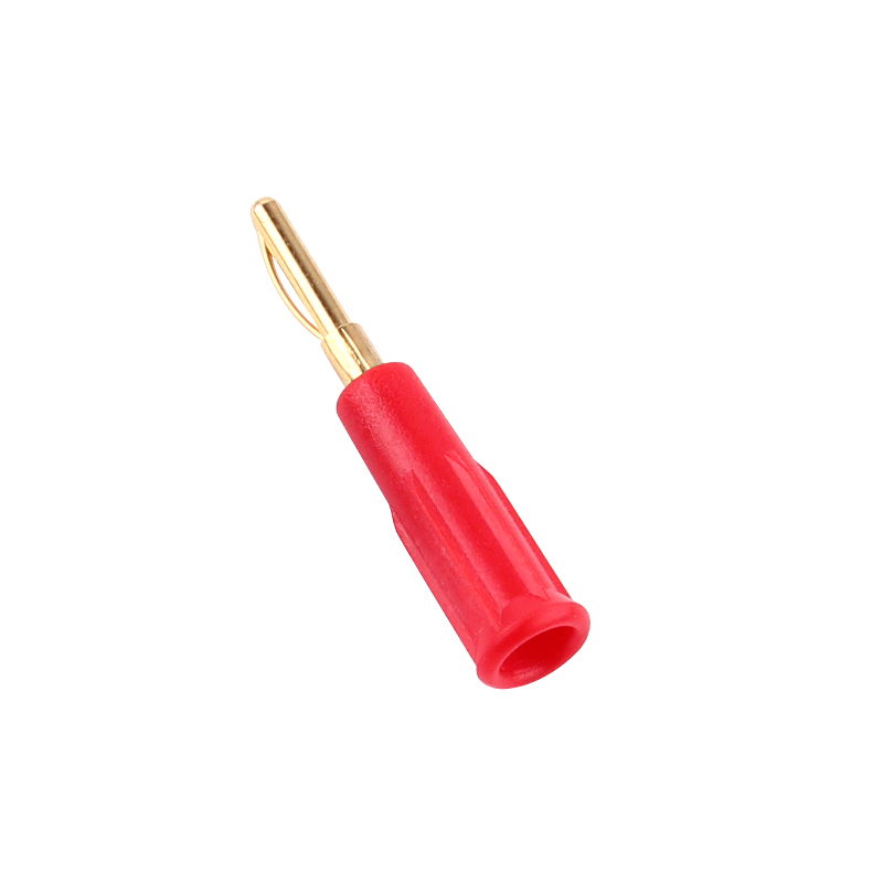 純銅鍍金2mm香蕉插頭,塑料護套使用螺紋與金屬件連接,采用耐高溫尼龍塑料,端子尾端可直接焊接。
