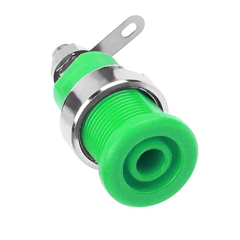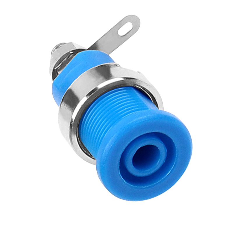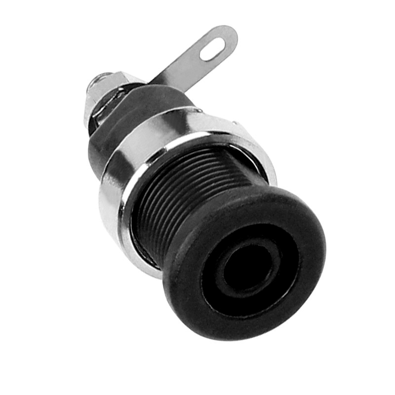 純銅鍍鎳嵌入式4mm輸入端子,采用金屬螺帽直接在面板進行固定,耐高溫尼龍塑料,尾端可焊接。