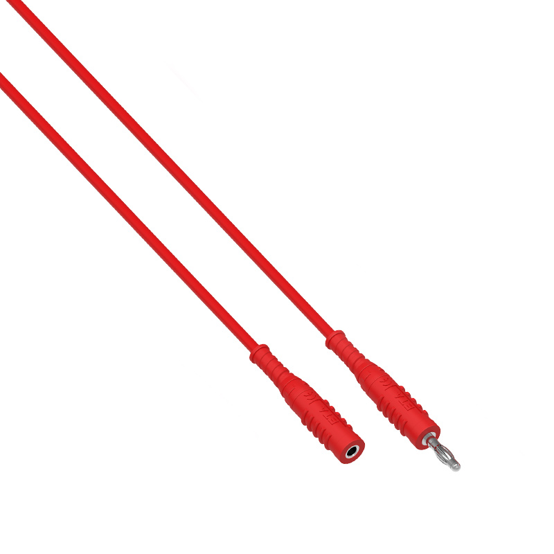 ETA4366A公轉母直插延長導線,有眾多長度和顏色可供選擇,4mm直插公插頭 - 4mm直插母插頭,高質量的硅膠導線,可以在寒冷時保持柔軟狀態。
