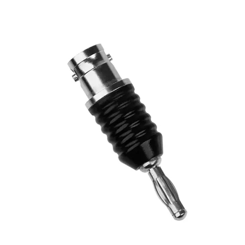 4mm轉接插頭,BNC母頭轉香蕉插頭,插頭為4mm公香蕉插頭,尾部支持BNC公連接器。