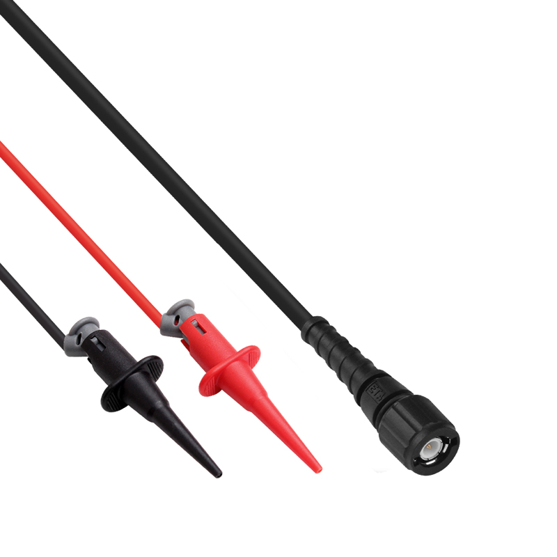 采用高質量RG58/50Ω硅膠線纜,阻抗匹配所有信號源、示波器輸入輸出阻抗,減少傳輸損耗。純銅BNC高頻插頭,接觸可靠,特制模壓紅黑分叉線,柔軟耐用,不容易折斷,接紅黑伸縮IC夾,適合測量IC或元件器的引角信號測量。