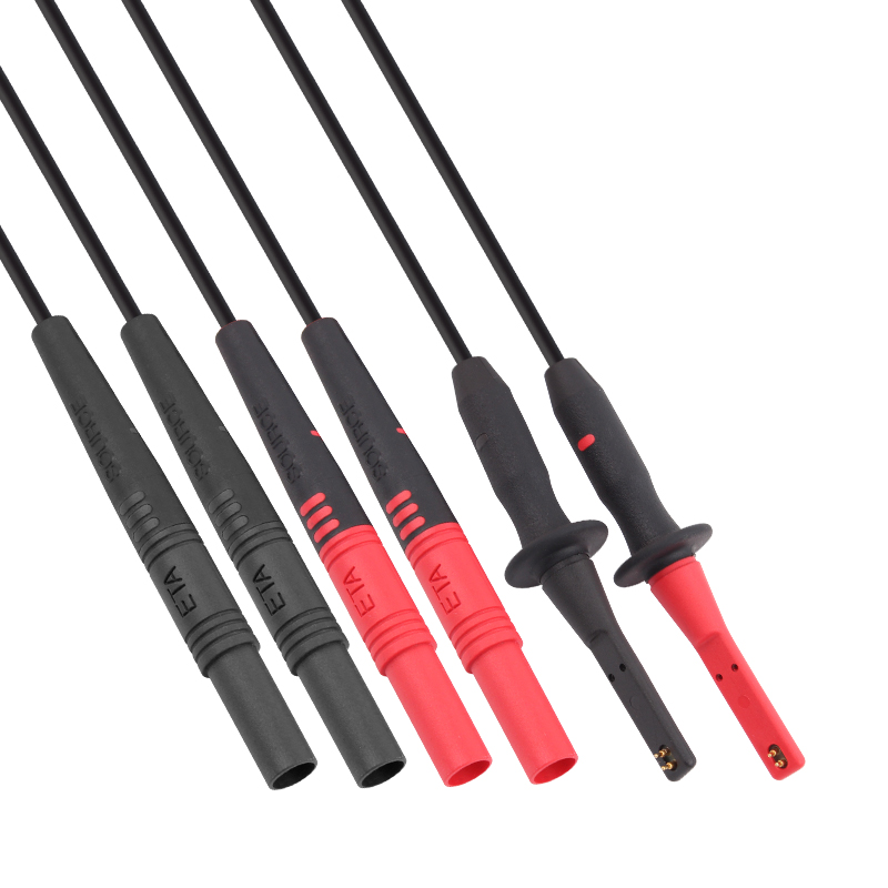在測試微小電阻時,為了消除引線電阻對測量引起的誤差,ETA4556而采用開爾文法四線檢測,測針部位為4點伸縮探針,平型的形狀設計專為滿足了電池測試現場需求,探針鍍金處理可穩定電流的通過,減輕探針使用環境的腐蝕侵擾提高耐久性和抗磨損,4mm標準香蕉插頭可以用在具有4線電阻測量功能的儀器如:微歐姆表、臺式萬用表、電池內阻測試儀等,能在生產線、驗收檢測等各種現場輕松使用。